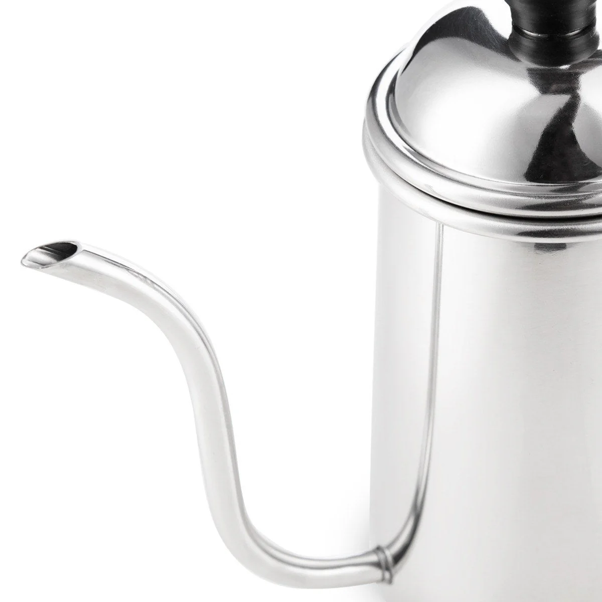 The elongated gooseneck with pinched tip delivers controlled, consistent water flow for perfect pour-overs every time. Prevents sloshing and allows for precise circular pouring motions.